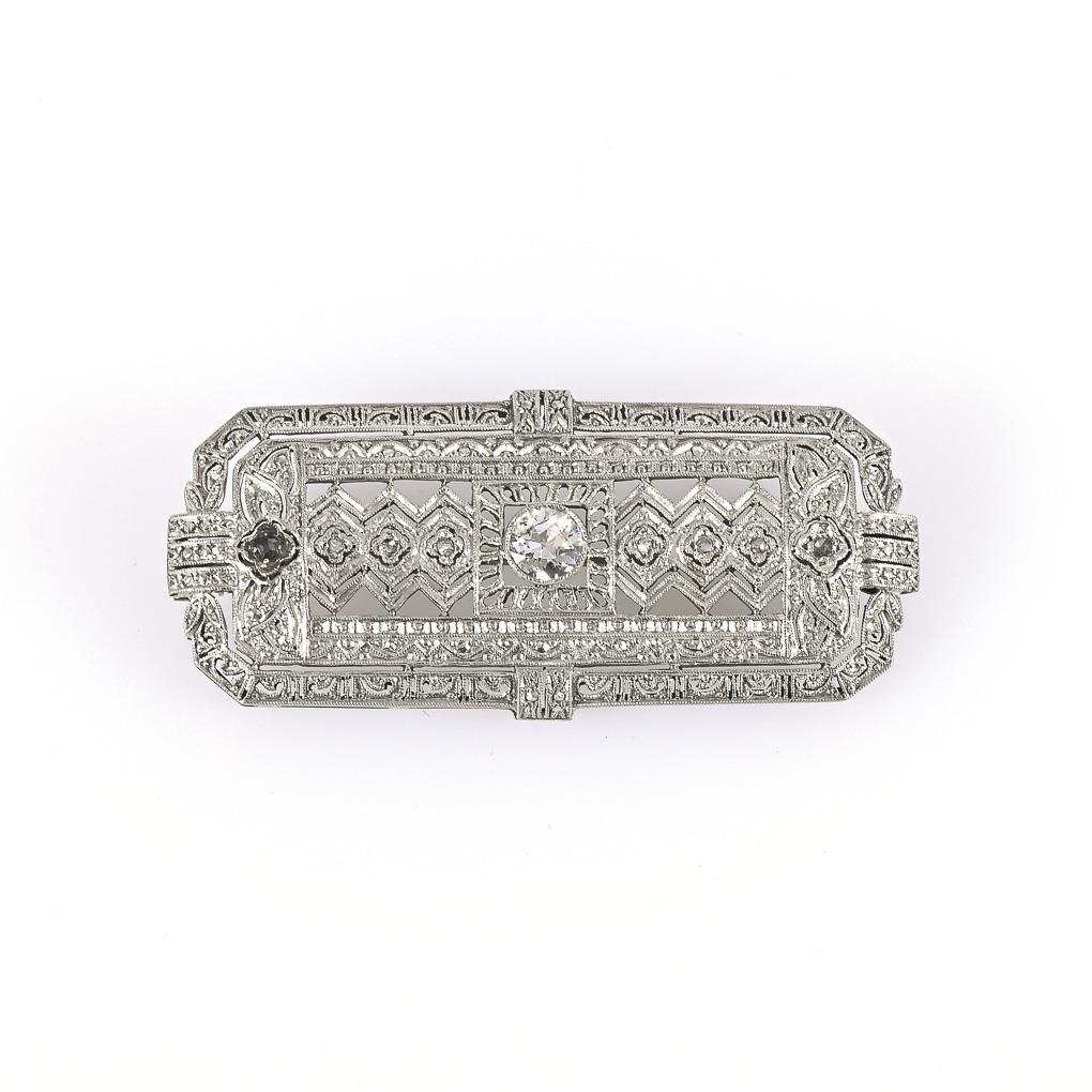Art-déco-Brosche mit Altschliff-Brillant und Diamantrosen.