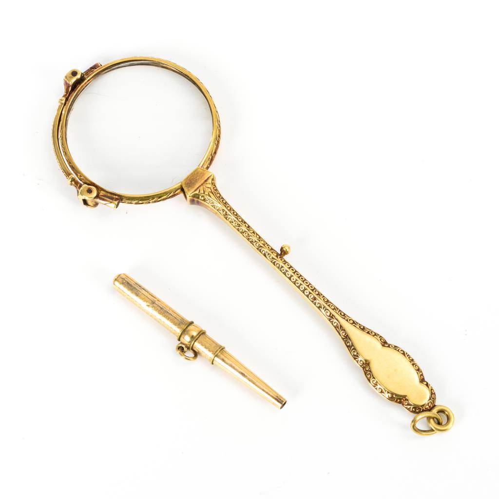 Goldenes Lorgnon und goldener Taschenuhrenschlüssel