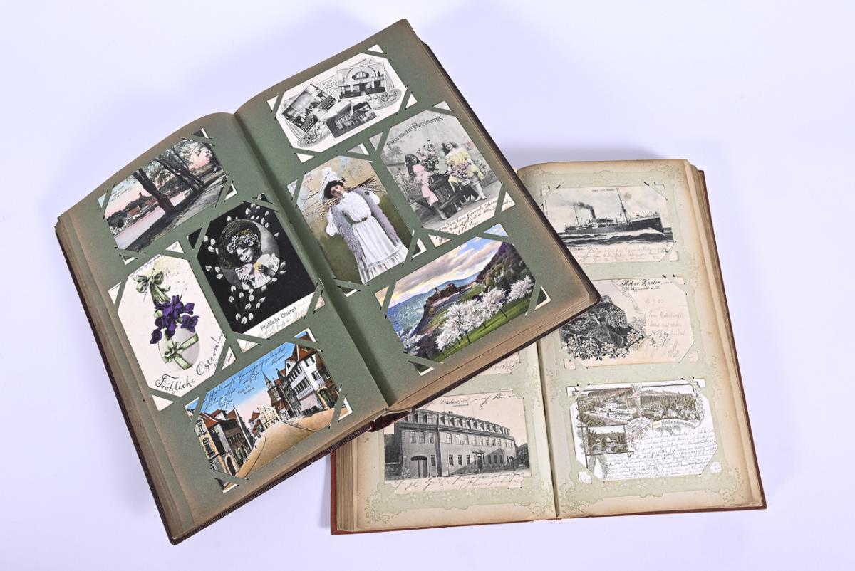 2 Postkartenalben mit zusammen ca. 910 Karten
