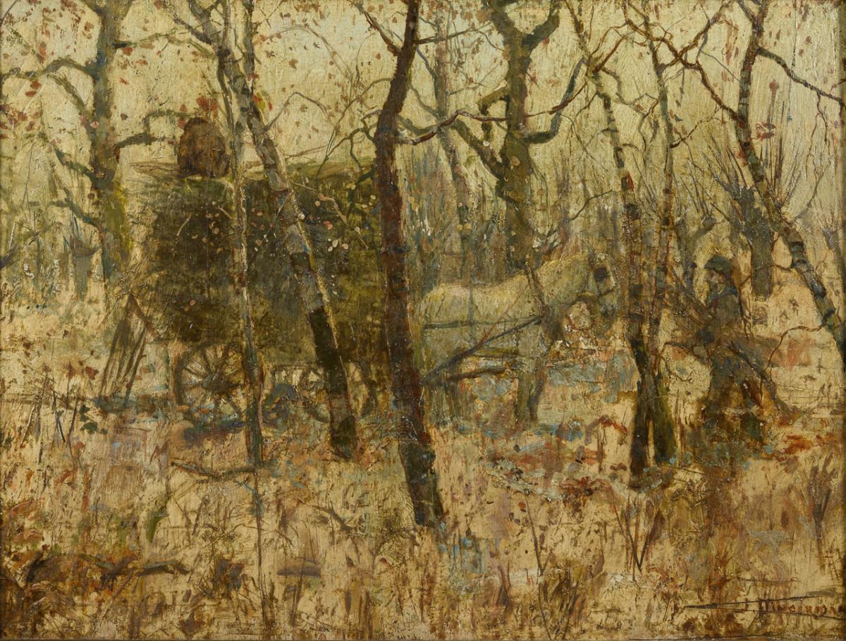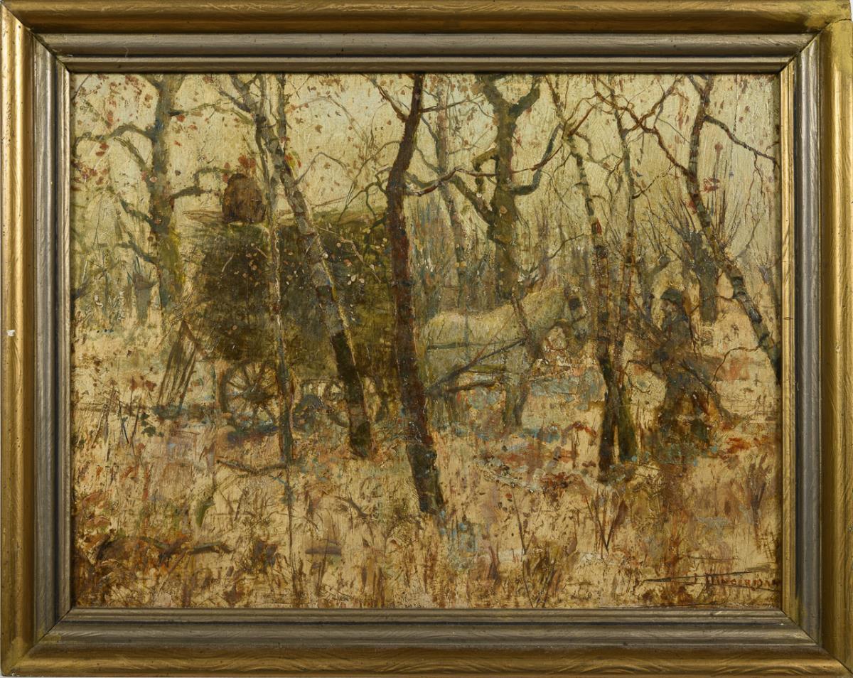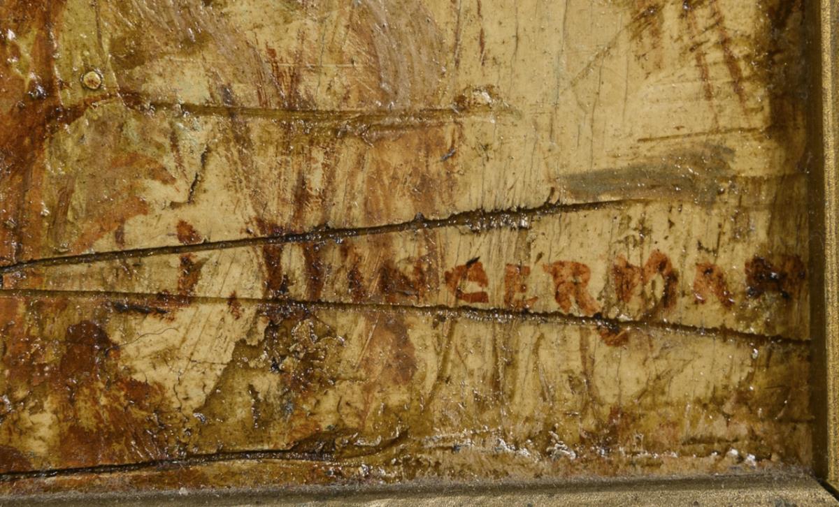 Öl/Sperrholz. Rechts unten undeutlich signiert. Um 1900.