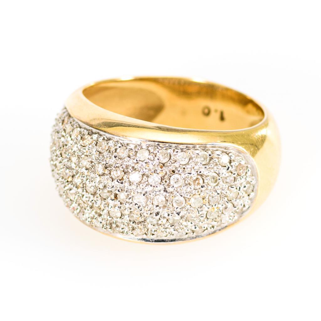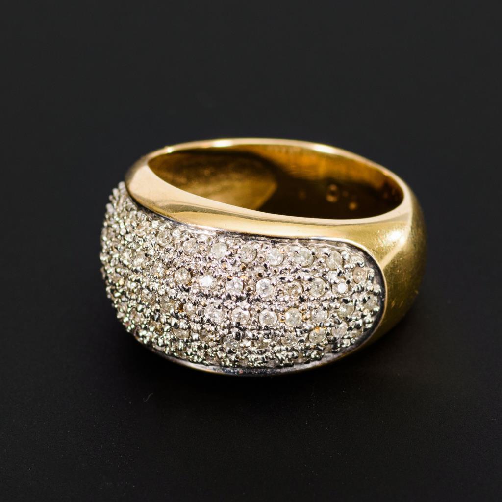 Breite Verlaufschiene mit kleinen Brillanten in Pavéfassungen.