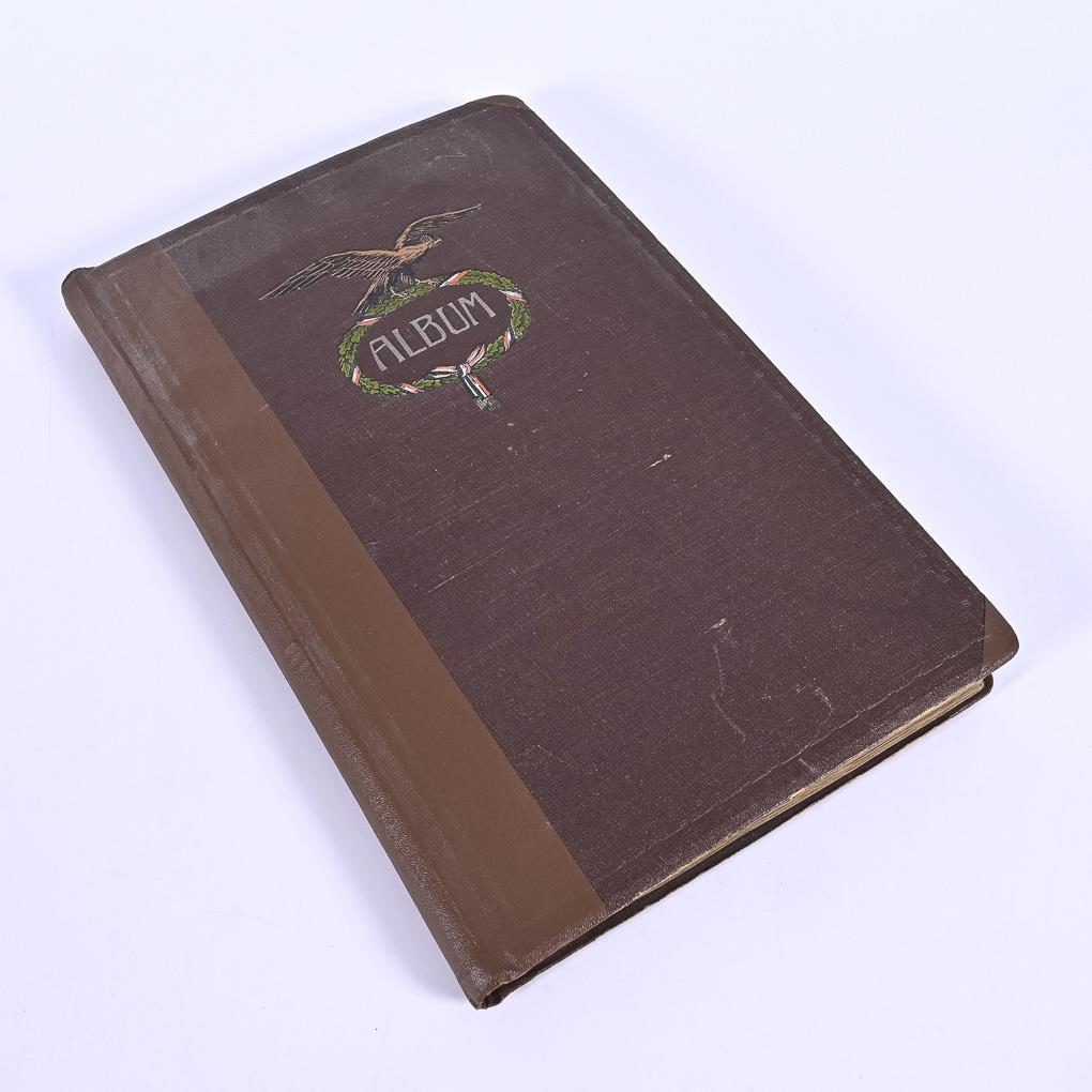 Ost- und Westfront, darunter viele Militär-Kitschkarten und Schiffskarten. Im braunen "Album".