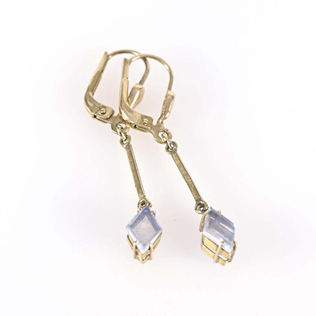 Stababhängungen mit krappengefassten Mondsteinrauten, an Federbügel.