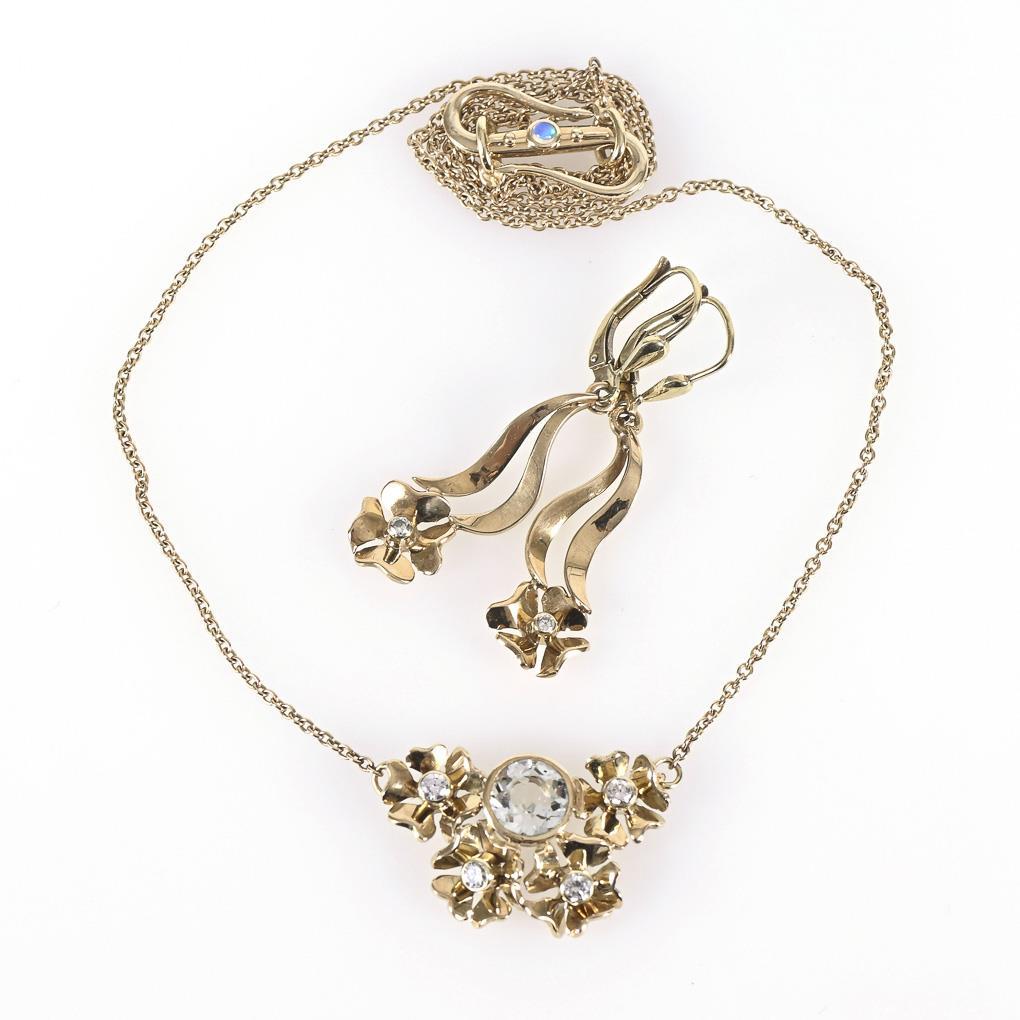 Collier mit Aquamarin und Brillanten und Ohrhängerpaar.
