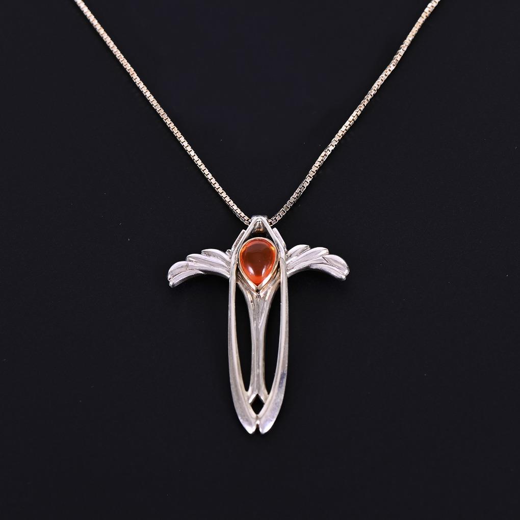 Silber 925 gestempelt. Anhänger 4 x 3 cm. Kette L 44 cm. 8,3 g.
