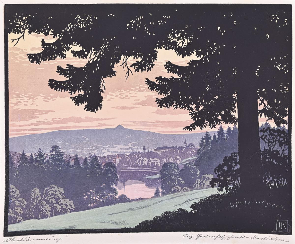 "Orig.-Farbenholzschnitt". Bleistiftsignatur, im Stock monogrammiert "HK".