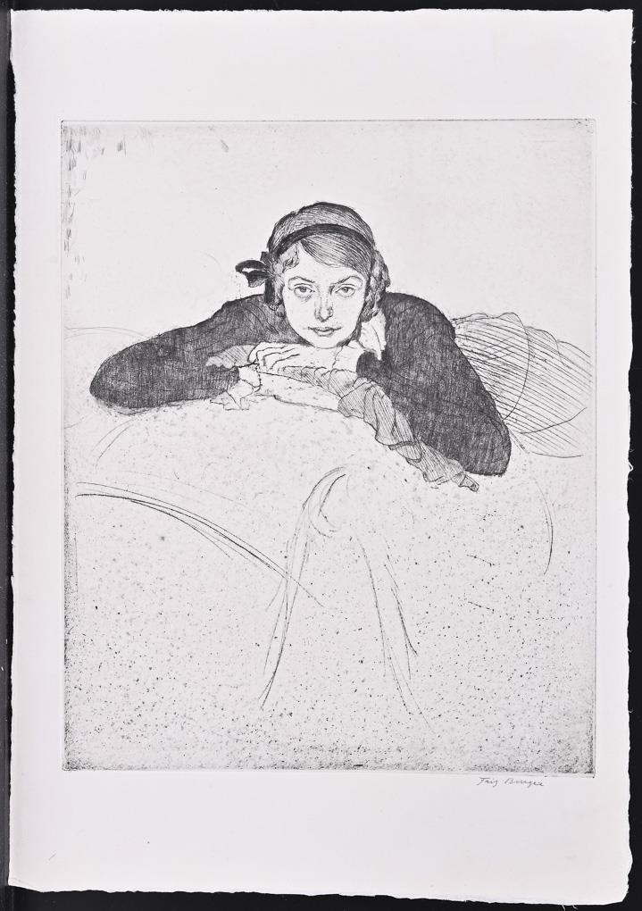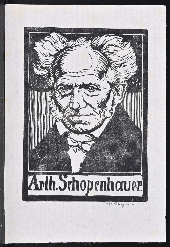"Arth.[ur] Schopenhauer": Linolschnitt auf Japanpapier, Bleistiftsignatur, Platte: 17,7 x 13 cm, Blatt: 24,3 x 16,8 cm, stockfleckig, Ecke oben rechts knickspurig | Bildnis einer jungen Dame: Radierung, Bleistiftsignatur, Platte: 30 x 24,6 cm, Blatt: 40,3 x 28,6 cm, minimal griffspurig.