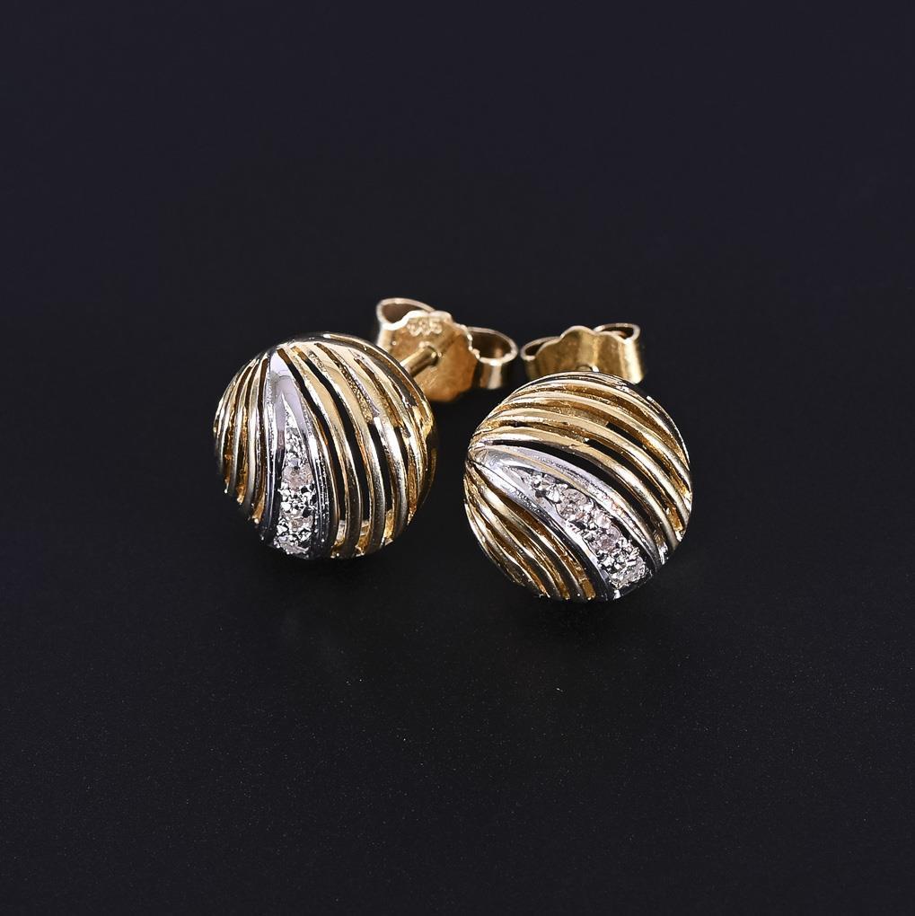 Halbkugelige Brisuren mit je 3 kleinen, eingelassenen Diamanten. Steckmechanik.