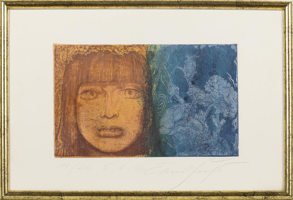 Farbradierung auf Bütten. Bleistiftsignatur. Künstlerexemplar: 11/24 E.A., Blindstempel "HW".