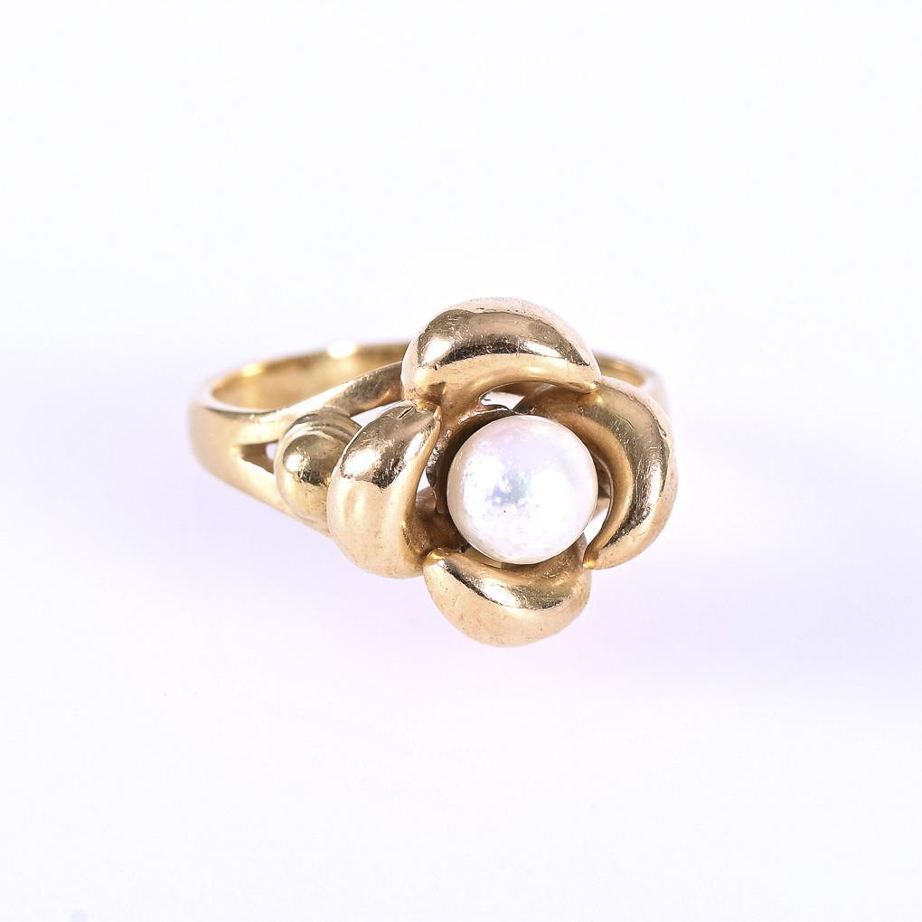 In Hohlform gearbeiteter Ringkopf mit Zuchtperle auf mittlerer Schiene.
