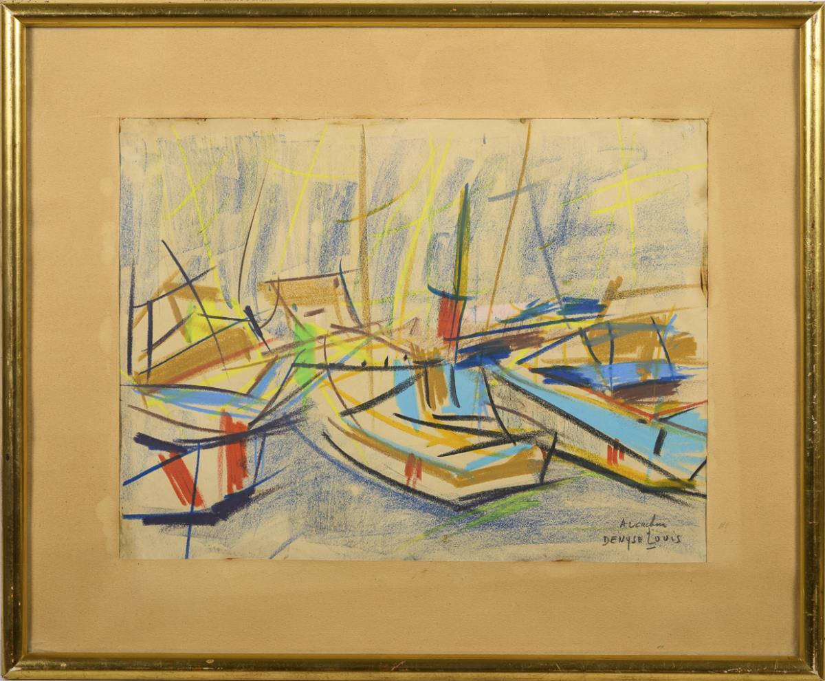 Abstrakt dargestellte Segler im Hafen. Knicke.
