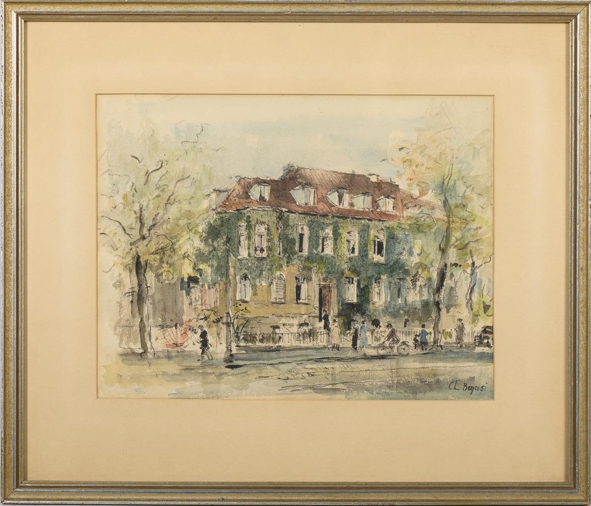 Aquarellierte Kohlezeichnung. Kohlesignatur.