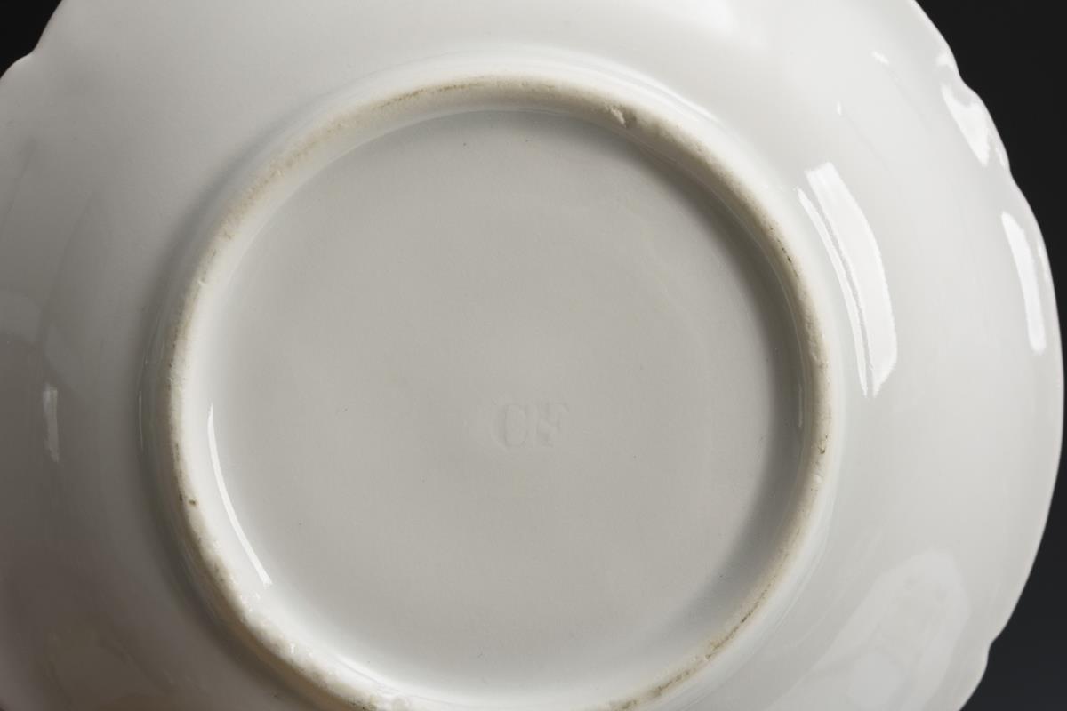 Polychrom bemalt, goldstaffiert. H Tasse 6,5 cm, Ø originale Untertasse 15 cm.