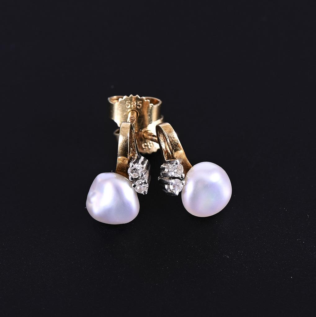 Ohrsteckerpaar mit Zuchperlen und Diamanten.