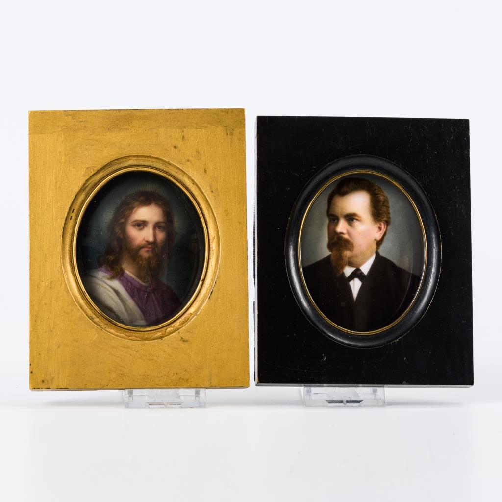 2 Porzellanbilder: Herrenporträt und Christusbildnis