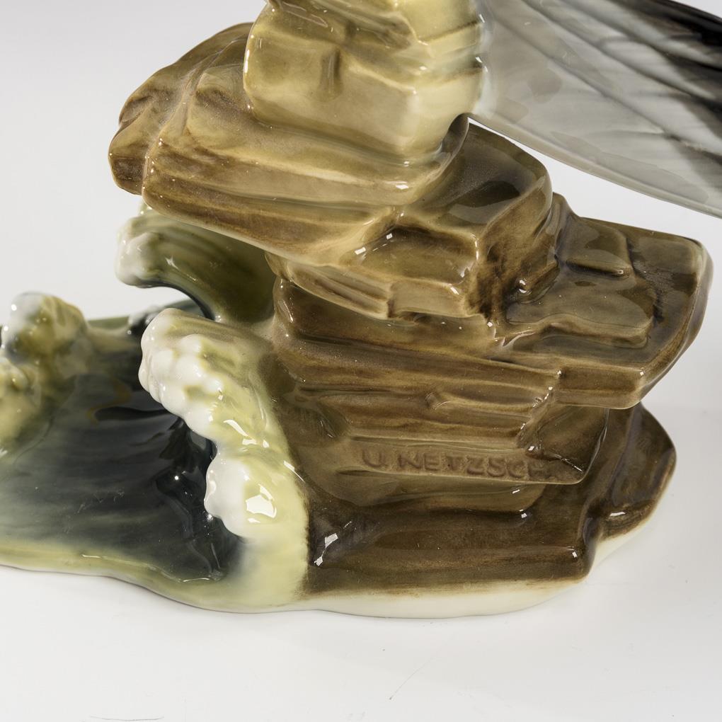 1x über eine über Wellen und Felsen fliegende Möwe, Entwurf Uwe Netzsch (*1944), bezeichnet. / 1x Möwenpaar auf einem Felssockel, Entwurf Gunther Granget (1932 Karlsruhe - 2010), bezeichnet.