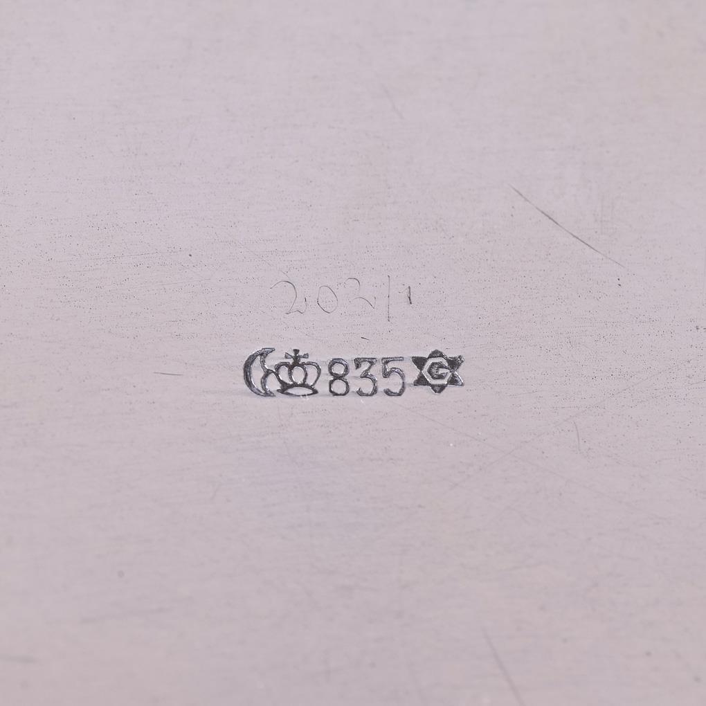 Godronierte Vase (Jakob Grimminger/835 gepunzt) und 2 passende 1-flammige Leuchter mit beschwertem Fuß (Emil Hermann/925 gepunzt). Vase mit minimalen Gebrauchsspuren.