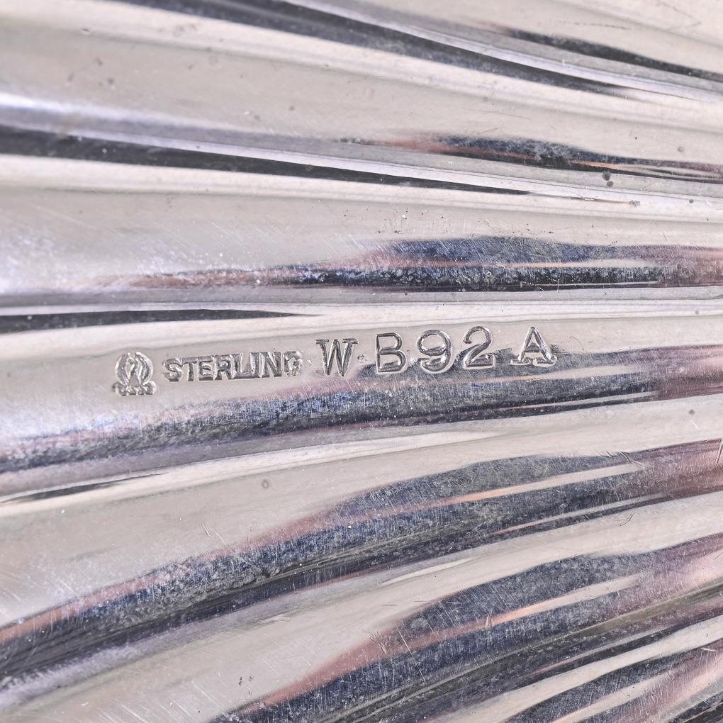 Rundes Tablett mit geschliffenem Bodenstern und versilbertem Rand./ Kleine runde Schale./ Muschelschale./ Godronierter Serviettenhalter. Gebrauchsspuren, Versilberung berieben.