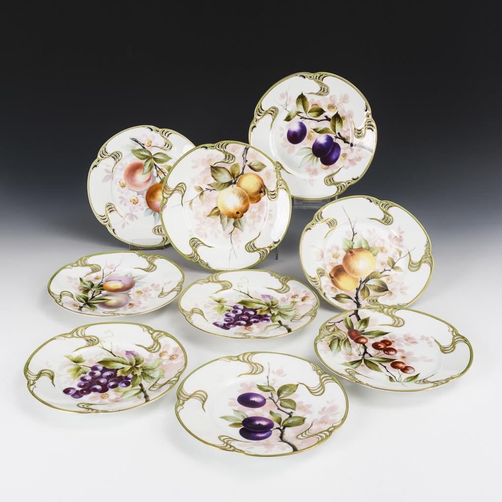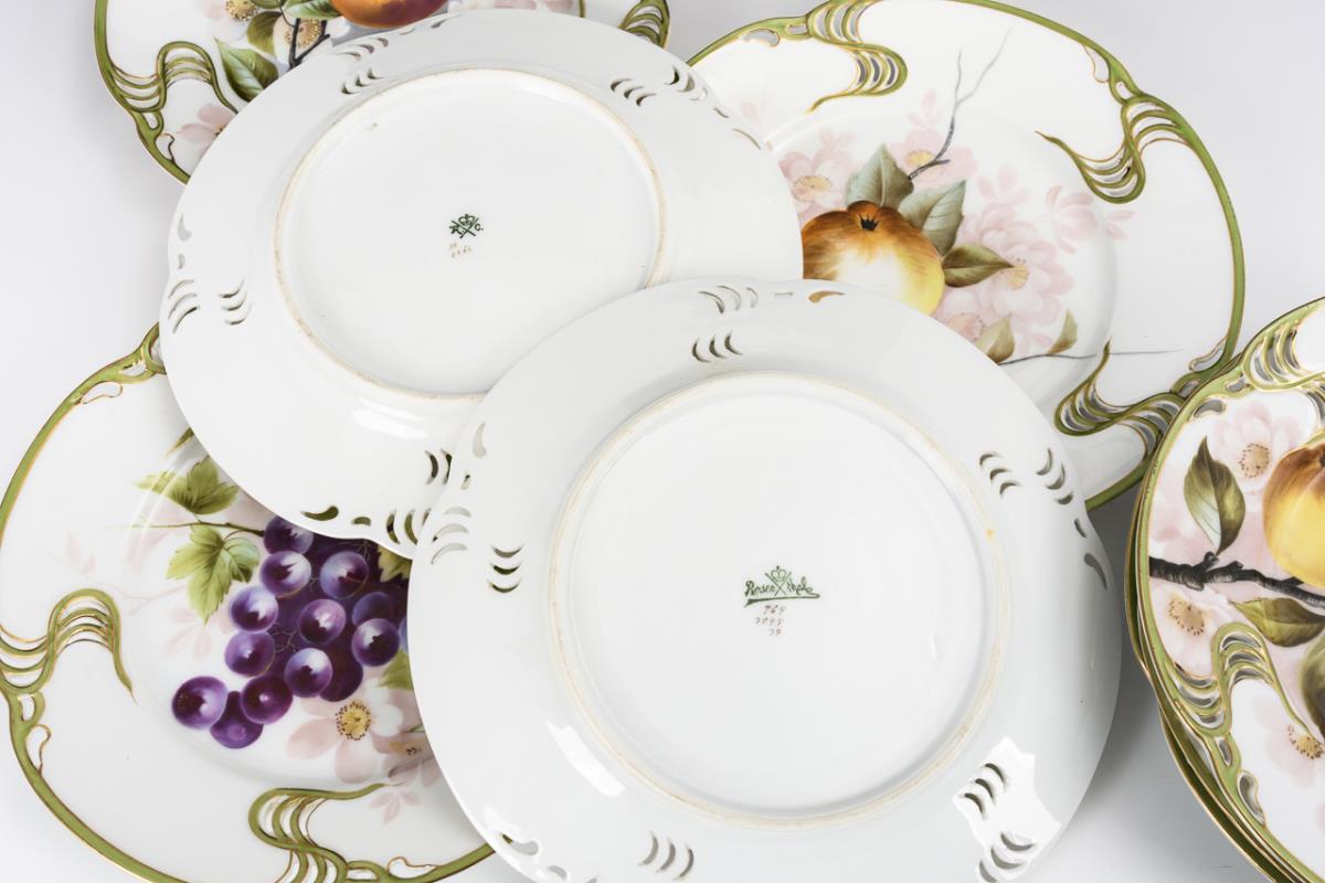 8 Jugendstil-Dessertteller mit Fruchtmalerei. Rosenthal.