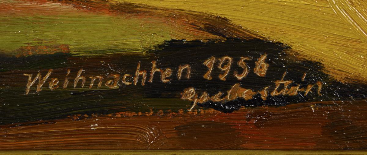 Öl/Malkarton. Mittig unten signiert. Datiert: Weihnachten 1956.