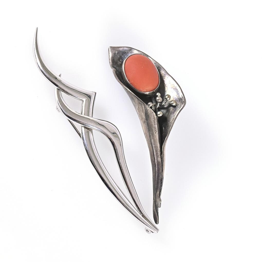 Designer-Brosche/Anhänger mit Koralle und Brosche Mexiko.