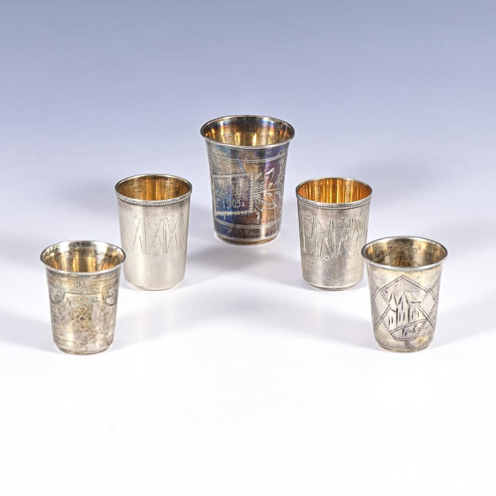 5 russische Wodkabecher.