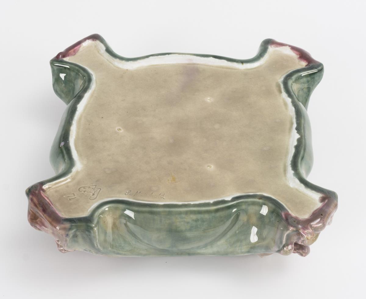 Glasur in Grün und Rot. H 7,5 cm, 26 x 26 cm.