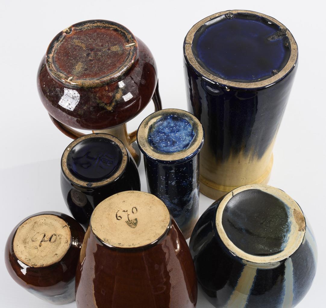 Verschiedenfarbige Lauf- und Kunstglasuren. H 13 bis 23 cm.