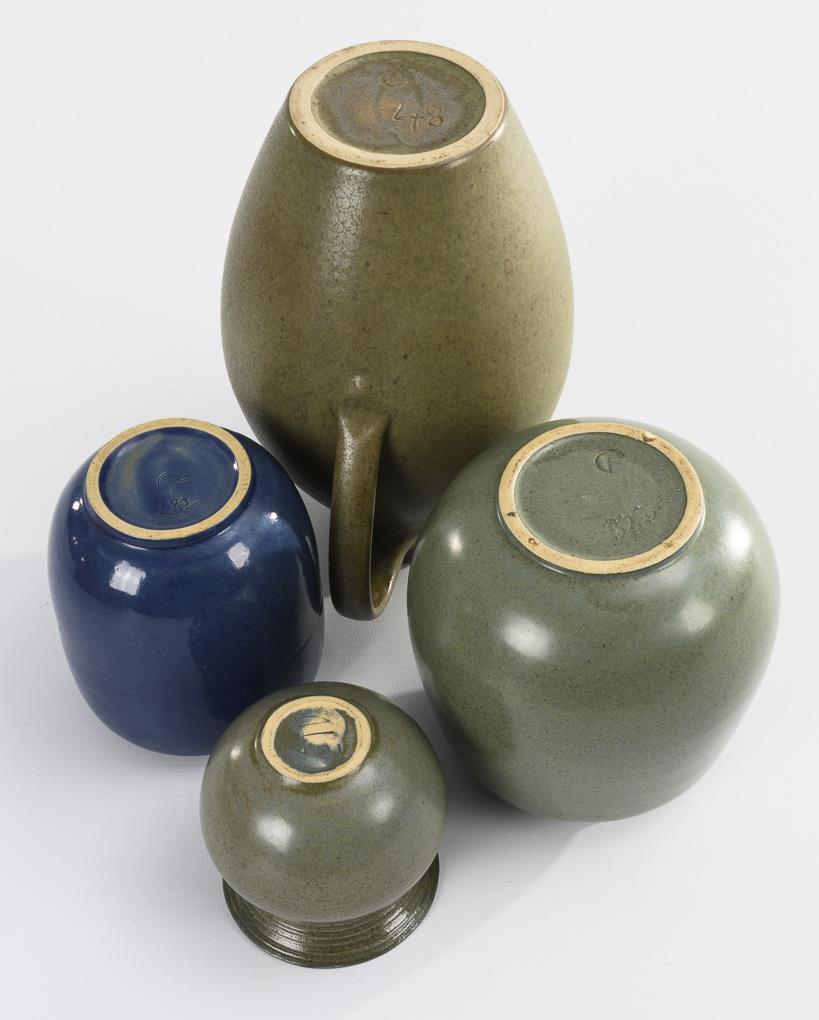 3 Vasen und 1 Kanne. Carl FISCHER (1891-1969), Bürgeler Kunstkeramische Werkstätte.