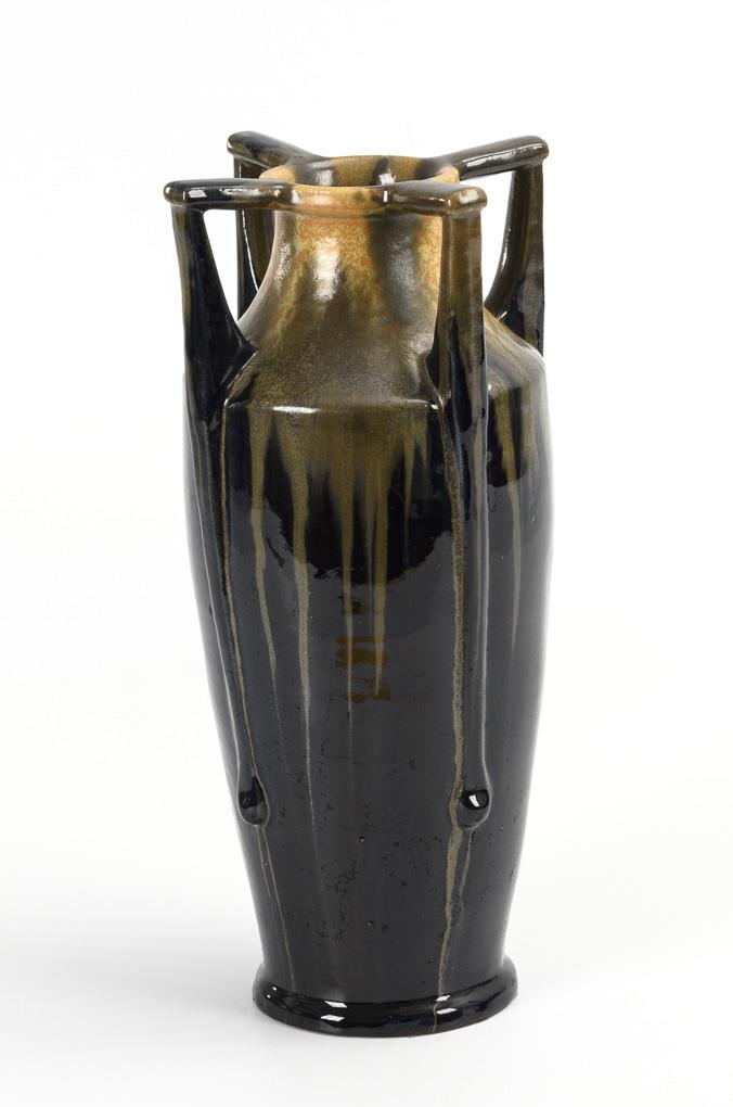 Jugendstil-Vase mit 4 Henkeln. Bürgeler Jugendstil-Keramik.