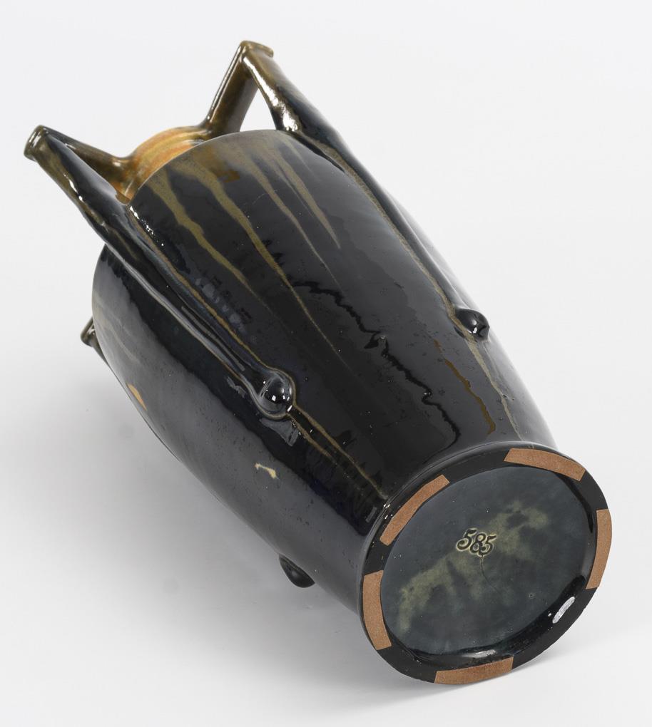 Gelbgrüne Laufglasur auf nachtblauem Fond. H 28,7 cm.