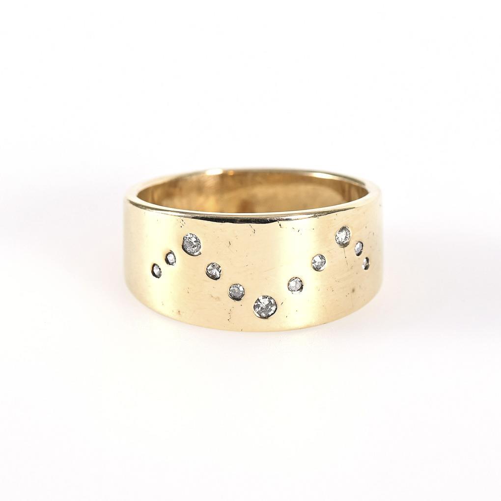 Breiter Reif mit 11 eingelassenen, kleinen Brillanten.