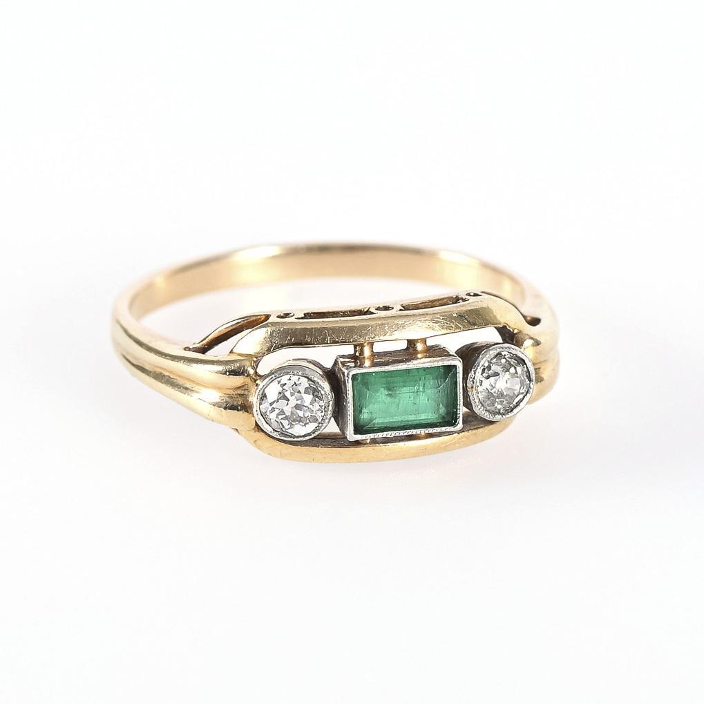 Art-déco-Ring mit Smaragd und Altschliff-Brillanten.