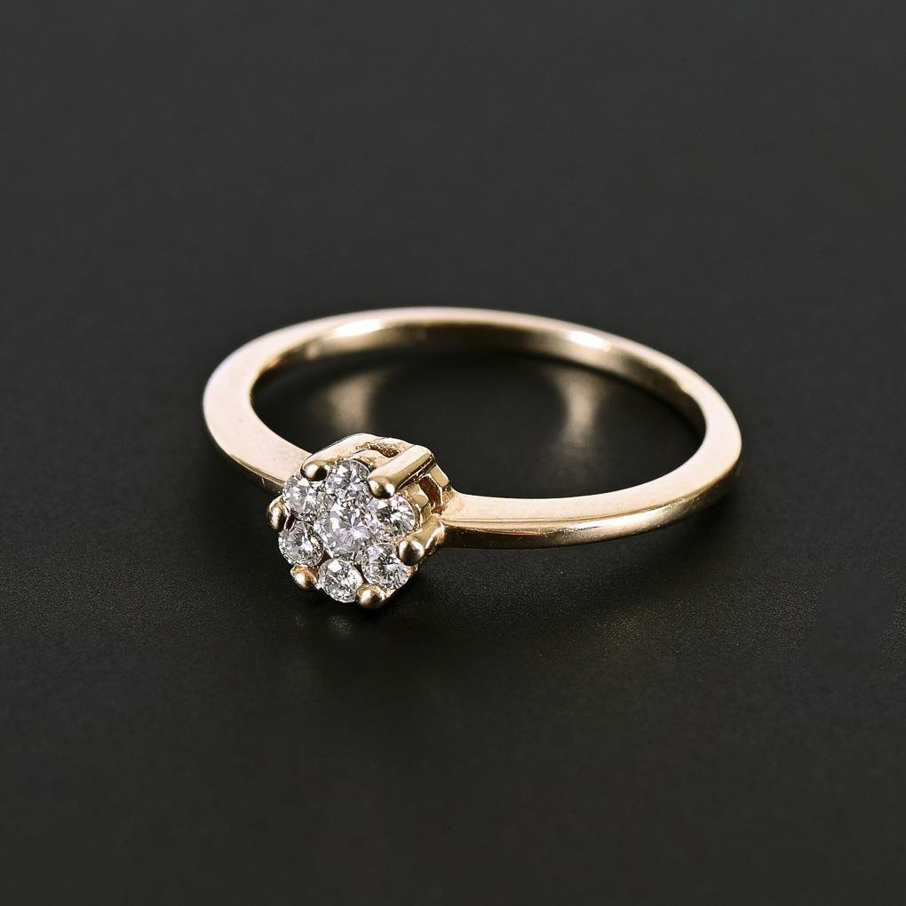Gelbgold 585 gestempelt. Ringgröße 55. Brillanten gesamt ca. 0,10 ct. 2,2 g.