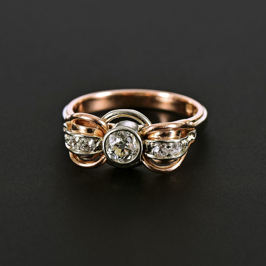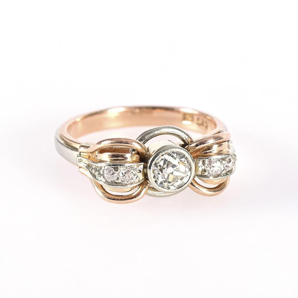 Roségold/Weißgold 585 gestempelt. Ringgröße 55. Brillanten gesamt ca. 0,46 ct. 5,1 g.