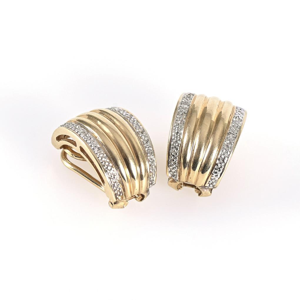 Reliefierte Ohrklipps mit je 6 eingelassenen Kleinstdiamanten. Klippmechanik.