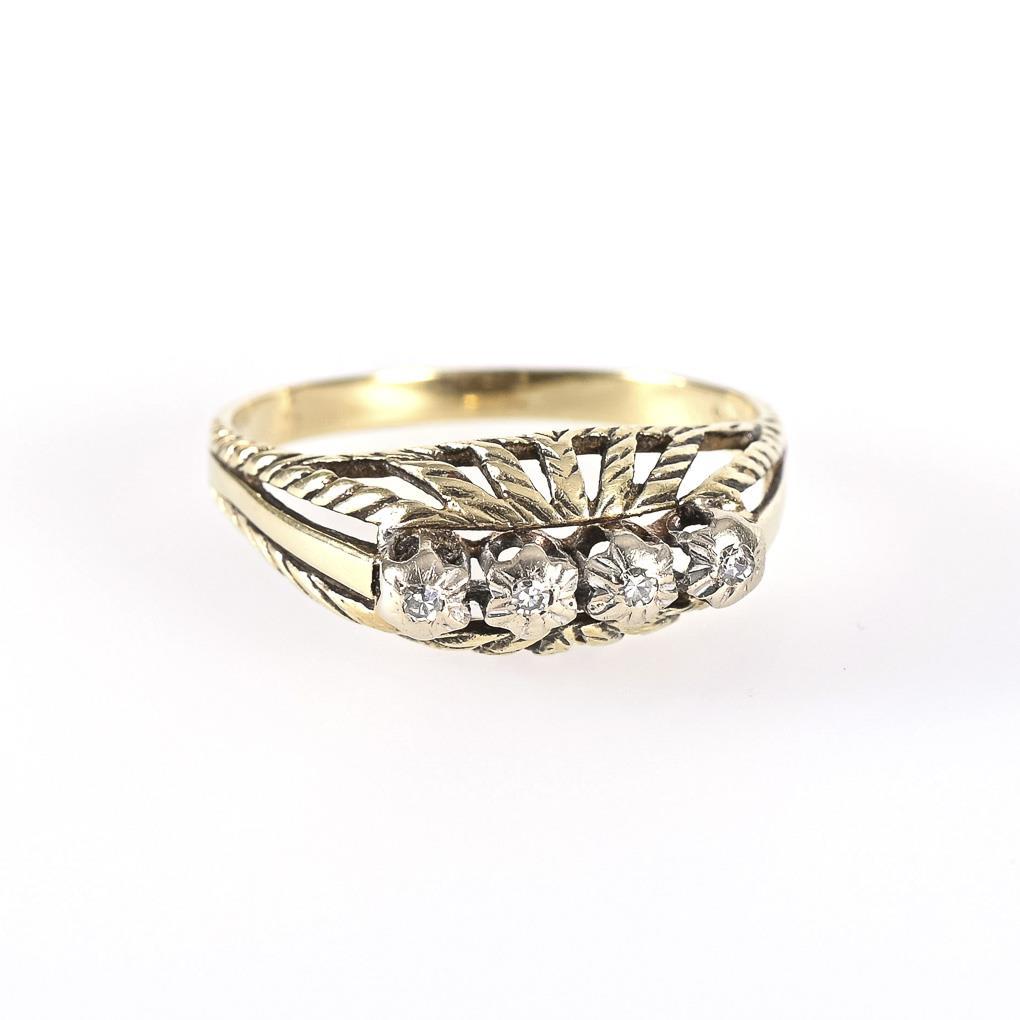 4 kleine, eingelassene Diamanten zwischen schmaler Schiene.