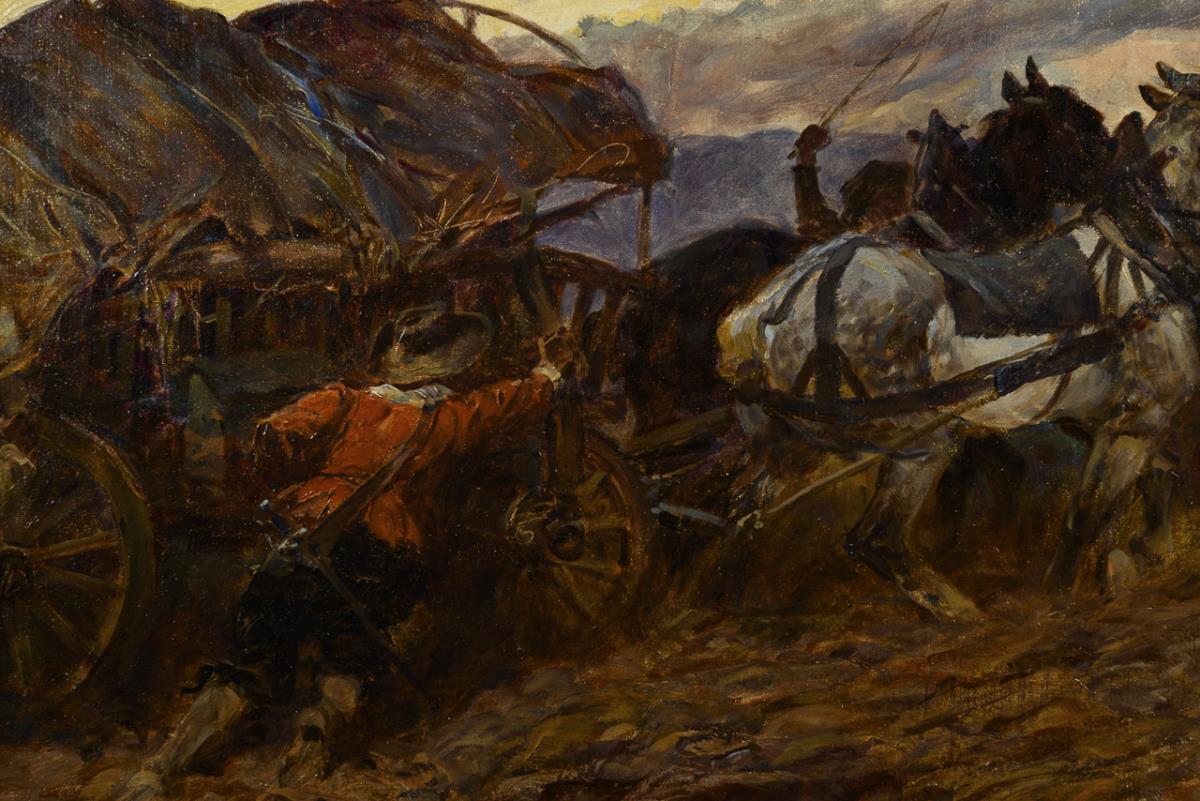 Landsknechte mit Planwagen