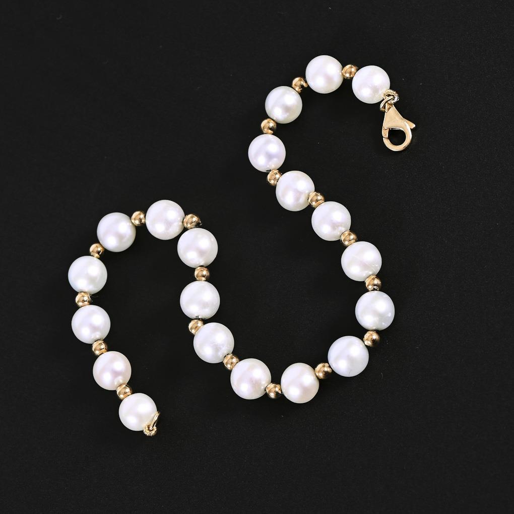 Gelbgold 585 gestempelt, geprüft. L 20 cm. Perlen Ø 7 mm. 9,1 g.