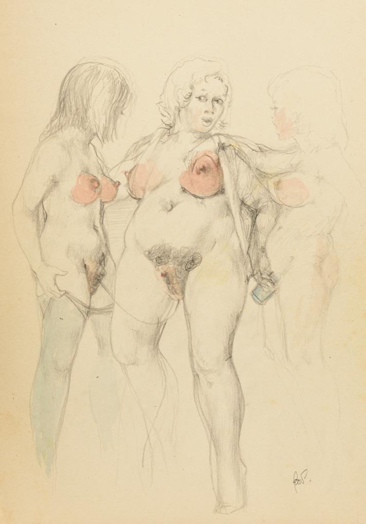 30 teils kolorierte Bleistiftzeichnungen. Je mit Bleistiftsignatur.