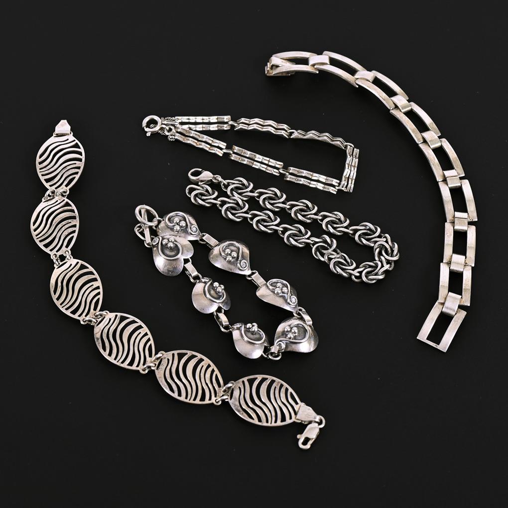 Silber 925 gestempelt. L 19,5/21,5/20 cm. 17,1/16,3/17,4/24,2/10,4 g.
