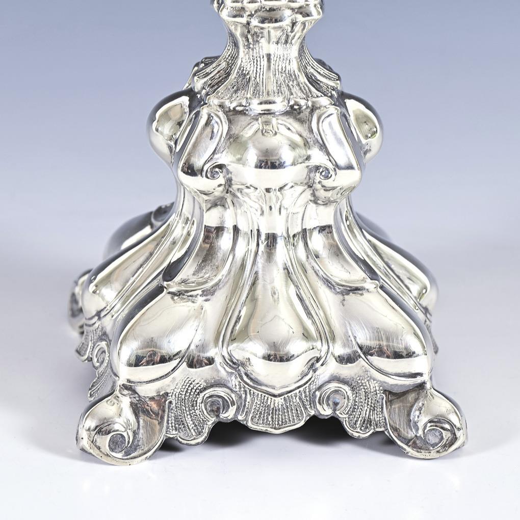 1-flammiger, reich verzierter Leuchter mit herausnehmbarer Tülle. Gebrauchsspuren, wenige kleine Dellen.