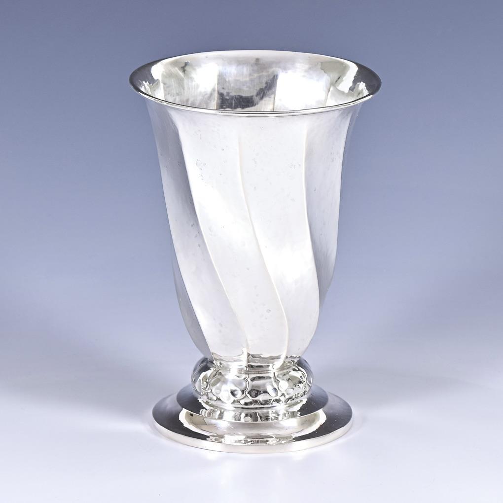 Handgetriebene Vase mit leicht gedrehter Vertikalgliederung. Minimale Gebrauchsspuren.