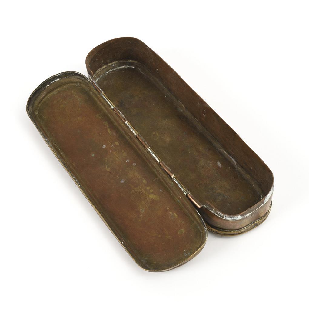 Messing geprägt, Kupferwandung. 3 x 16 x 5 cm.