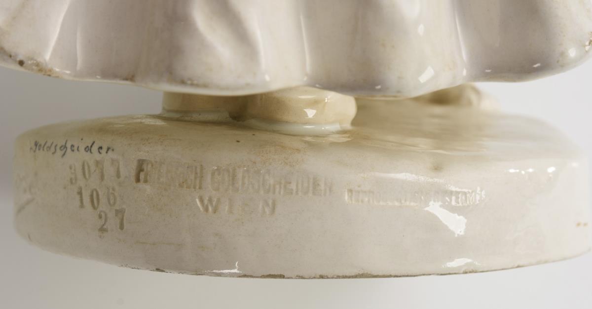 Biedermeier-Mädchen mit Katze. Wiener Manufaktur Friedrich Goldscheider.