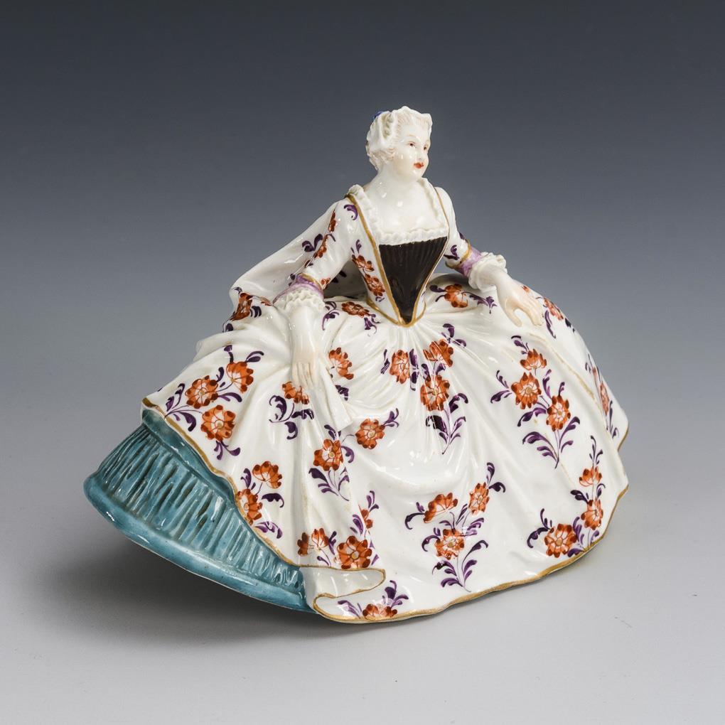 Rokokodame mit großem Reifrock, unter dem Rock ein Haken zum Einhängen eines Klöppels.