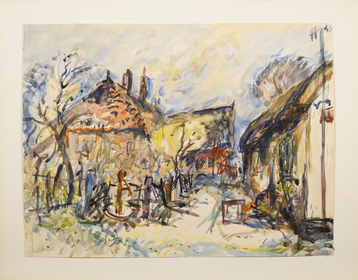 Aquarell. Links unten signiert, verso auf Karton Künstler-Stempel sowie Nr. "Poel-010" und betitelt mit Kirchdorf. Datiert: (19)78.