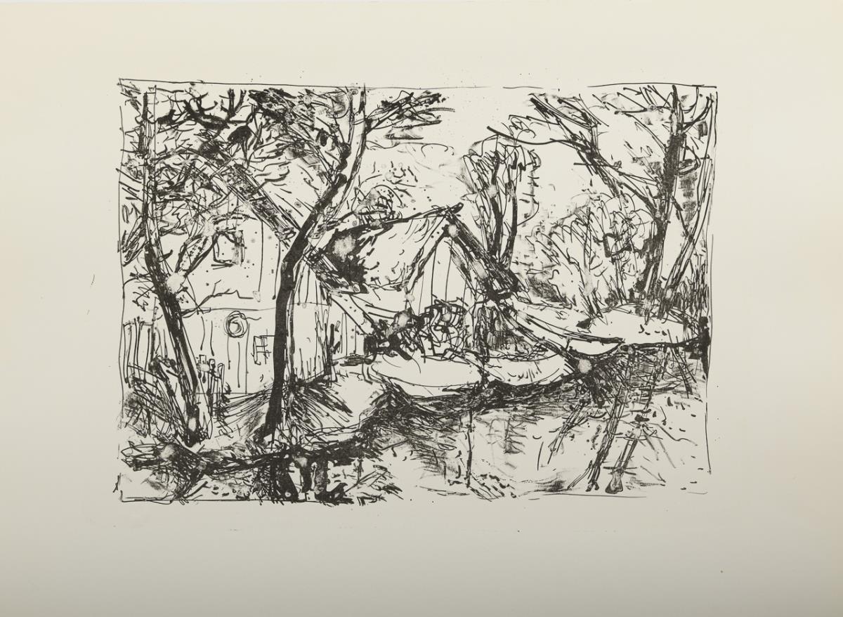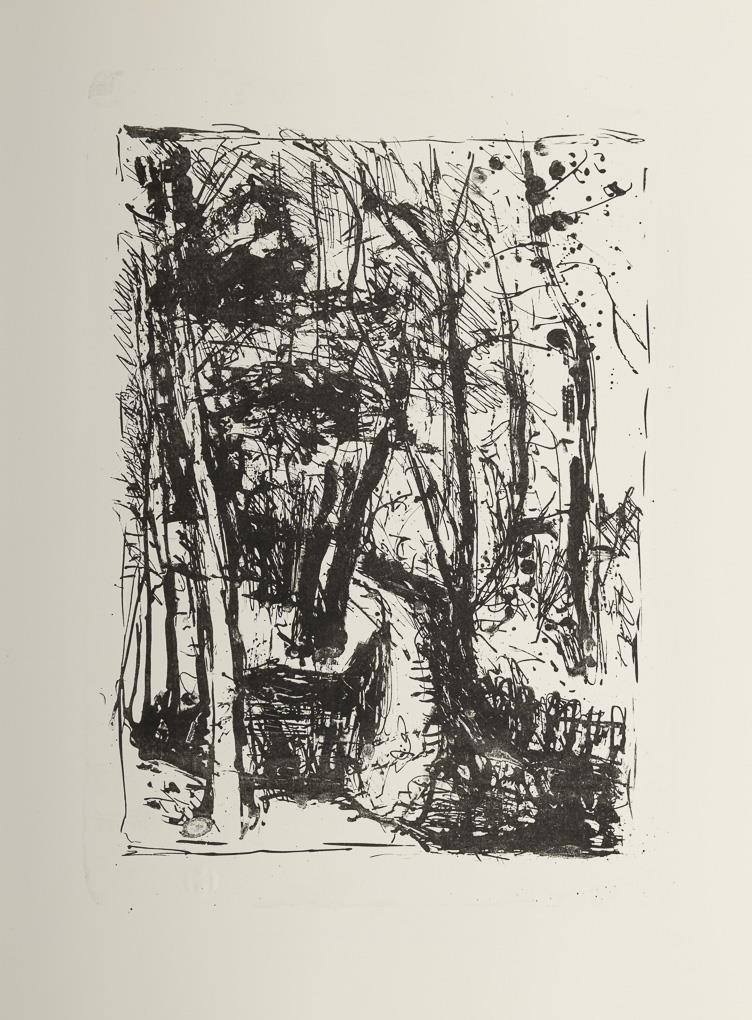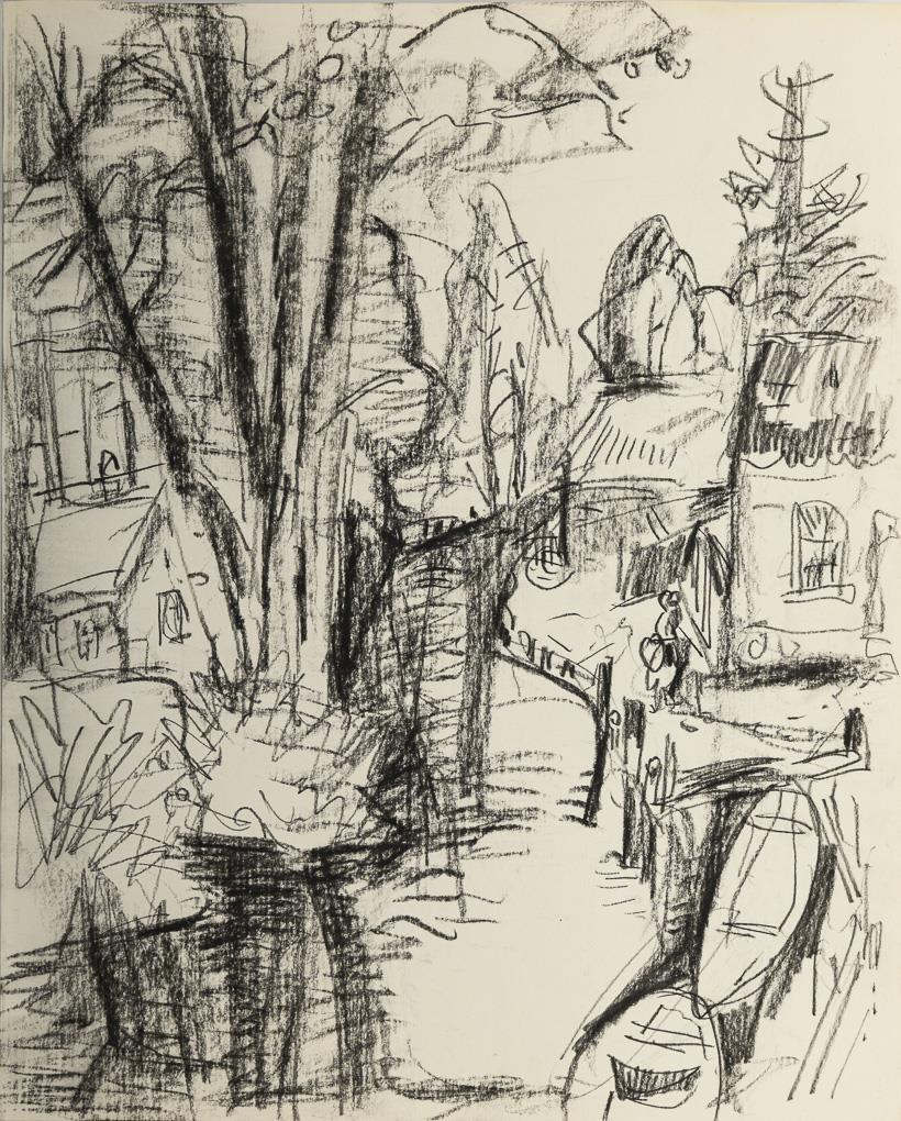 Vollständige Mappe mit 8 Lithografien zum Thema Spreewald, mit Begleittext von Gerd W. Fiedler, 2011 und Inhaltsverzeichnis; als Beigabe eine Kohlezeichnung mit Dorfansicht, 42 x 34 cm, verso Bleistiftsignatur und Stempel "Heinz Mutterlose - Maler und Grafiker Schkeuditz", Randbereich minimal gebräunt, verso etwas verschmutzt.