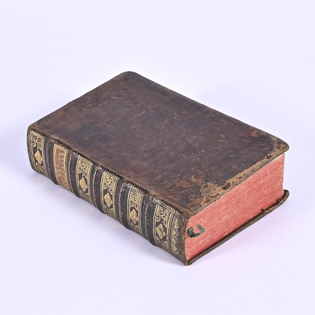 In französischer Sprache mit ausführlichen deutschen Erläuterungen zur Übersetzung, auf jeder Seite. Titelbild, Titel, Bildnis, (8), 344, 294 (46) Seiten, eine Landkarte und 24 ganzseitige Kupferstiche. Lederausgabe mit Goldprägung, Rotschnitt. Leichte Altersspuren.