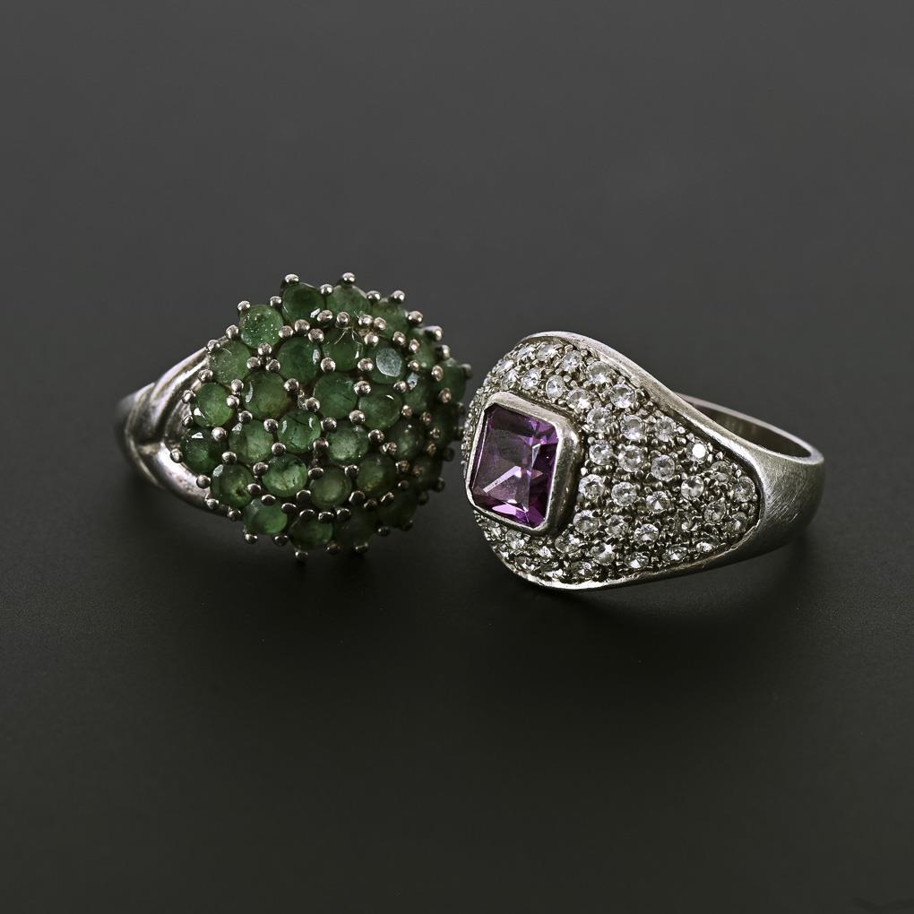 Auffällige Ringe, besetzt mit verschiedenen Imitationen. Mittlere Schienen.